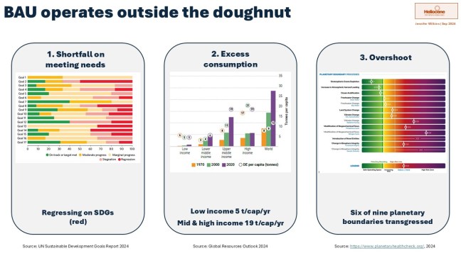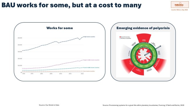 The problem is that BAU works for some but at a cost to many. High income countries have become richer, faster than other groups. At the same time, we see evidence of a polycrisis in which global issues are amplifying.