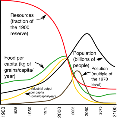 Figure 11: Limits to Growth standard run (business-as-usual) projection, 1972 (Meadows et al , 1972)