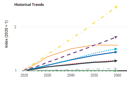 Figure 7: UNEP Historical Trends scenario, 2020 to 2060 (UNEP International Resource Panel)