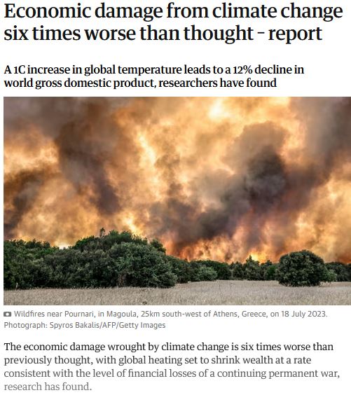 Mar 2019 – A landmark study found that a 1°C rise in temperature cuts global GDP by 12%. The damage rivals that of a permanent global war economy.